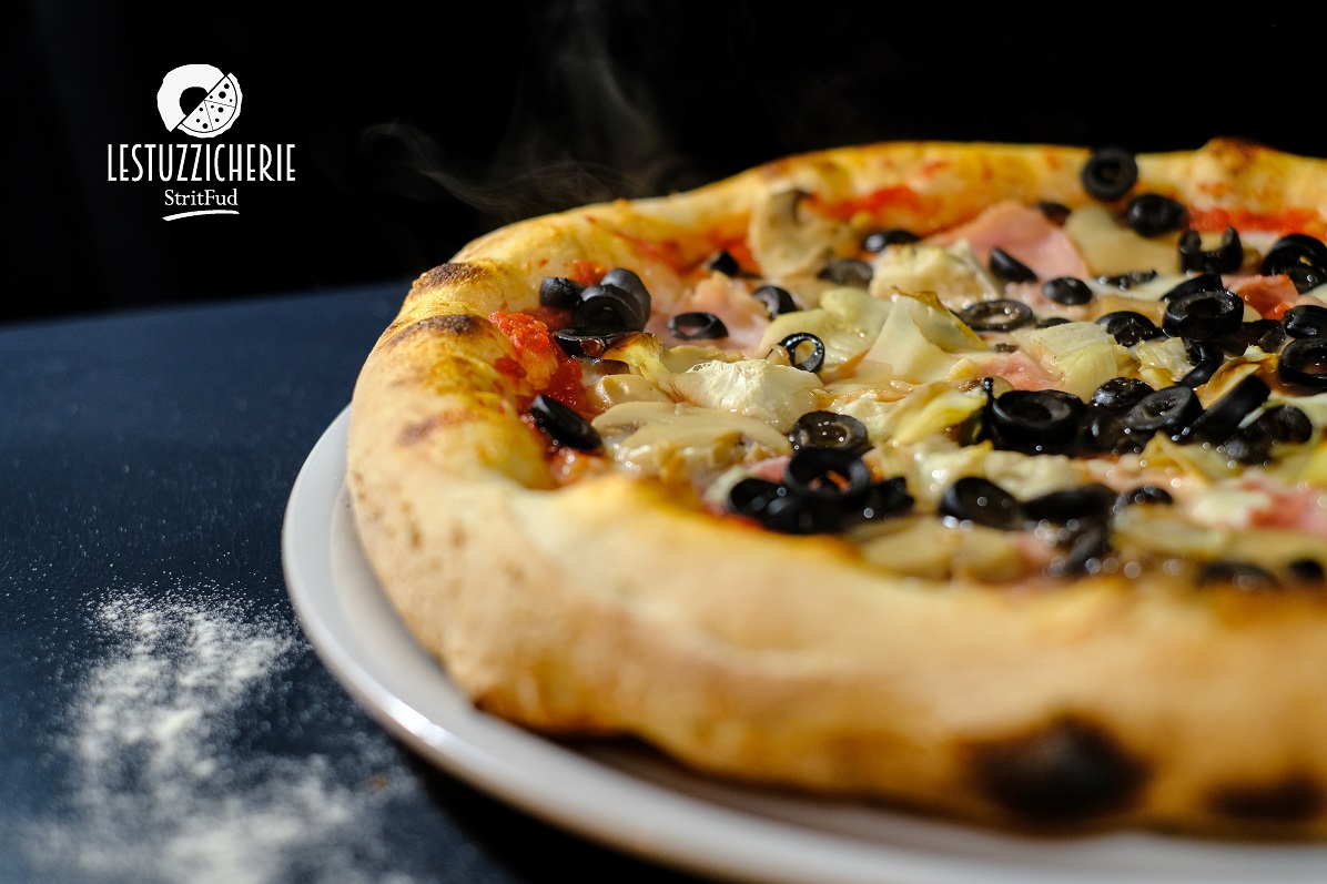 Ingredienti: Pomodoro, Fior di latte, Prosciutto cotto, carciofi, Funghi champignon, Olive nere, Olio Evo.