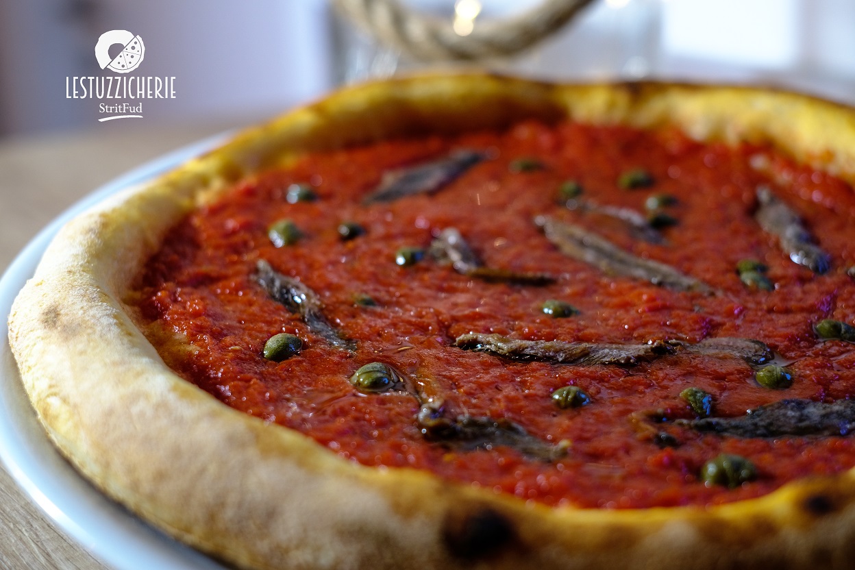 Ingredienti: Pomodoro, Acciughe, Capperi, Origano, Olio Evo all'aglio.